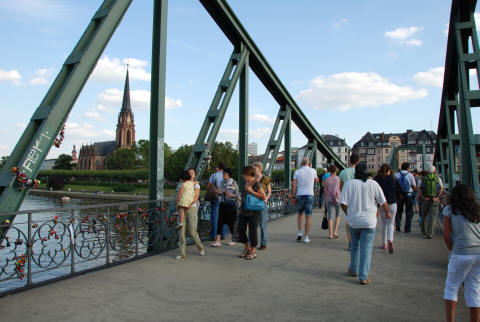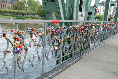 欄干にはたくさんの「愛の南京錠」 恋人同士が、永遠の愛の象徴として、公の場所に南京錠を掛け鍵は捨てるらしい 2000年代から始まったと言うから比較的新しい現象 日本でも見られるらしい