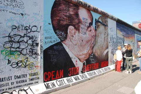 ソ連指導者ブレジネフと東ドイツ指導者ホネッカーの落書き絵