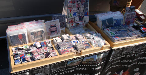 1989年破壊された壁のかけらが土産物として売られている