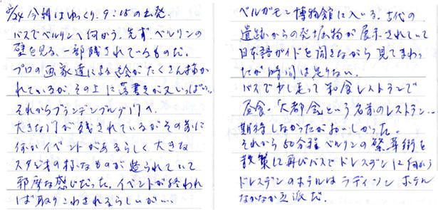 朝9時の出発。まず、ベルリンの壁観光。取り壊された壁のかけらがお土産品として売られている。ホテルの売店で見たものは10p四方の塊で約7ユーロ(1,000円弱)。