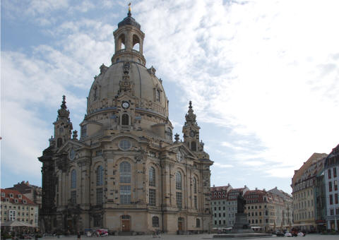 第2次大戦での爆撃で瓦礫となった聖母教会、この瓦礫をジグソーパズルよろしく再建し2005年に完成したという聖母教会を眺め、再び、ツヴィンガー城中庭に入る。