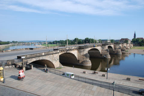 現地ガイドの案内で、ツヴィンガー宮殿中庭を散策、さらに、広場からエルベ川の方に歩く。歴史有る古都らしく、実に、落ち着いた雰囲気である。古風な趣のある橋が架かっている。