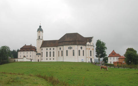 牧場の中に立つヴィース教会