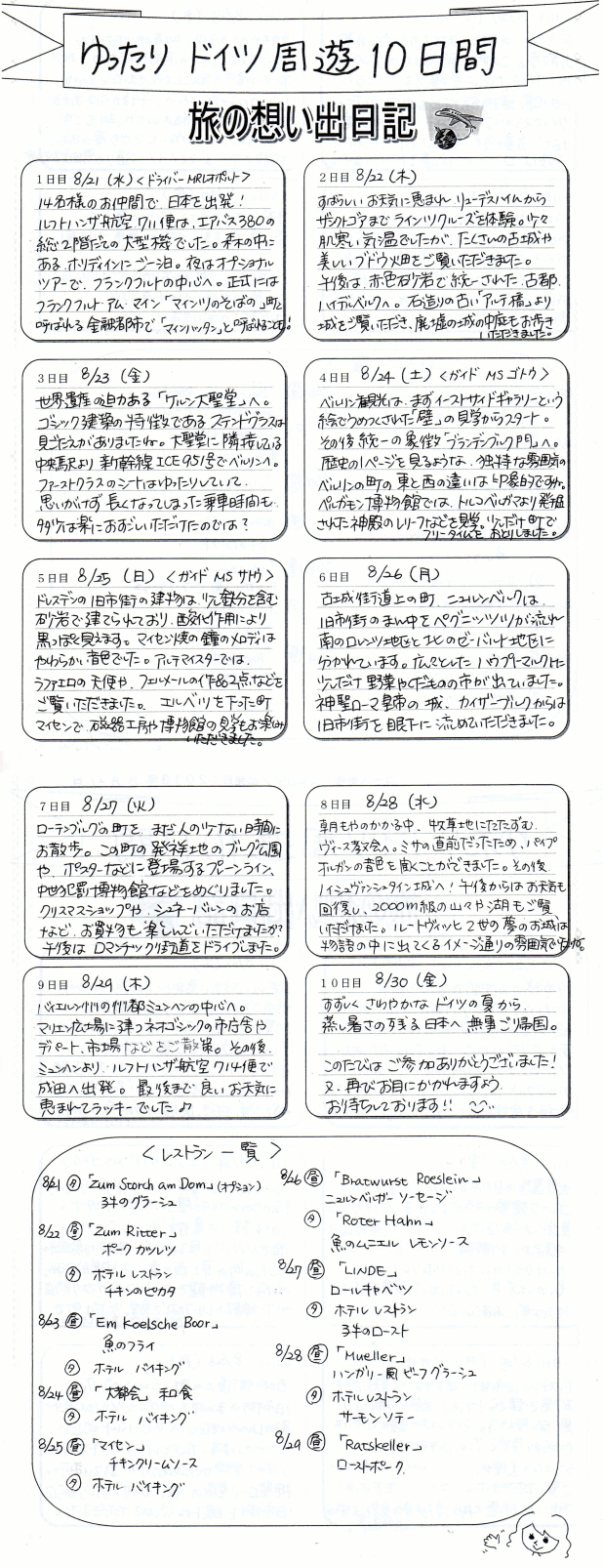 今回のツアーの添乗員さんが、帰国後、親切にも旅日記を送ってくれた。