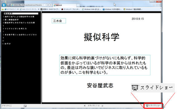 安谷屋武志君の寄稿「疑似科学」はパワーポイントというプレゼンテーションソフトで作成されている