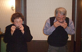 ひときわ注目を集めたのが、鮎川君と大島夫人によるハーモニカの二重奏。どこで音あわせをやったか一応さまになっており、皆さんの喝采を浴びた。来年は一層の精進を期待したい。