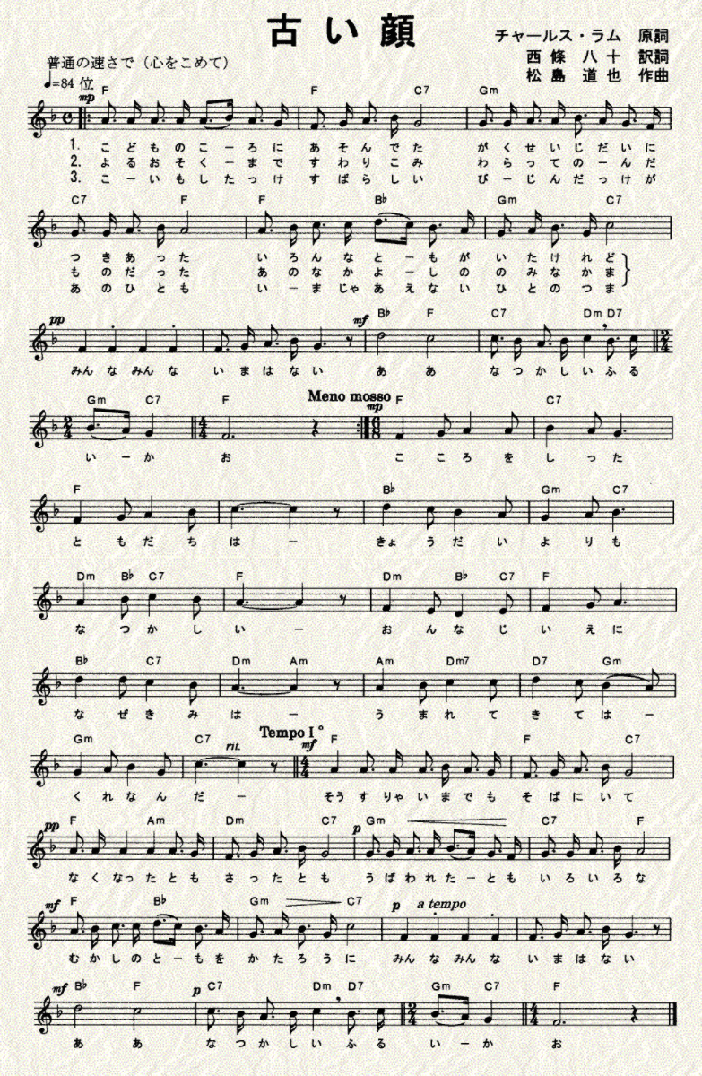 「古い顔」は作詞者も、作曲者もはっきり分かっていることをご存じだろうか。つまり原曲が存在するのである。拙文で経緯をご紹介するより、この曲を補修・編曲した中田喜直氏の文を紹介する。