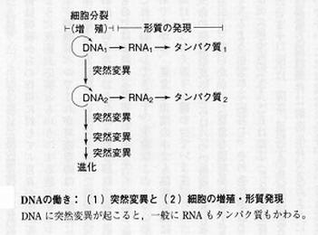 細胞分裂の際DNAは突然変異を起こし、いずれ進化となって定着する。