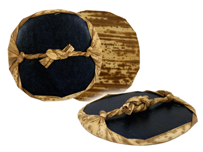 それは、版画を摺るときに使う〔馬簾〕という丸い手動プレス(?)があり、これは1番外側を竹の子の皮で巻いてあるのですが、この皮が馬鹿力で摺るため時々破れることがある。