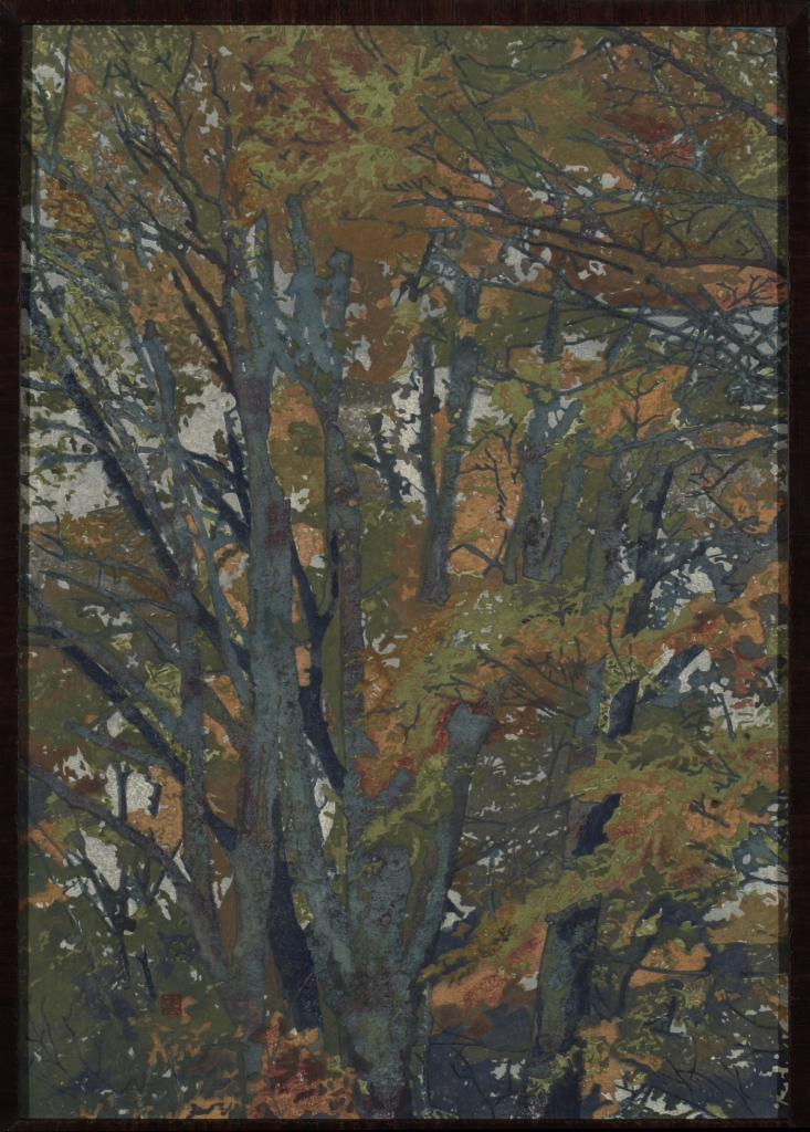 作品(?)の「忍ぶの森・・」という題は、この風景が和歌山県の根来寺の林で、根来であれば〈忍びの者〉という発想でした。
