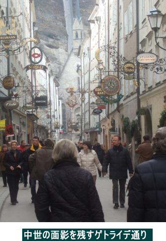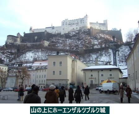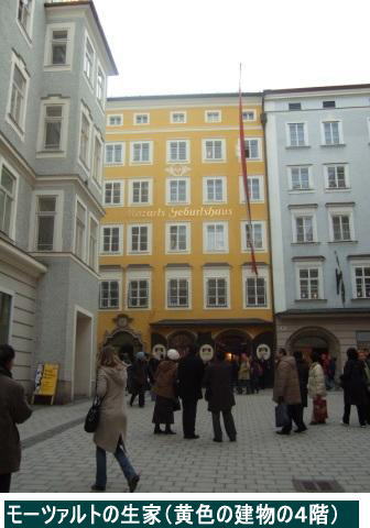―ザルツブルク その1― ―”聖地”ザルツブルク― 季節がよくなかった。映画では春から夏の緑したたる季節なのが、今は真冬だ。緑は何もない。まだらに溶け残った雪が寒々しい。5月とか6月ころ来たら恐らく全く印象が違っただろうと思う。 ![]() この辺りから、小高い山の上にあるホーエンザルツブルク城が建物の間に見え隠れしてそれが段々近づいてくる。この胸がわくわくする感じが忘れられない。この城は現存する城塞建築の中では保存状態がよいとされている。また城から見るザルツブルクの風景が素晴らしいということだったが、時間の関係で城には行けなかった。唯一の心残りである。 ![]() ミラベル庭園のすぐ近くに、かの”帝王”カラヤンの生家があった。がモーツァルトが余りに偉大なために、帝王といえども、気の毒なことにここでは影が薄い。ガイドの話では彼は西欧人としては小男だったそうだ。ブロンズ像も心なしか小さく見えた。そう、男は大きけりゃいいってもんじゃないのだ! ![]() ザルツブルクにはザルツァッハ川という、ドナウ川の上流にあたる支流が流れている。川のむこうが”聖地”の核心部分、旧市街である。橋の手前から見ると、きれいな川を挟んでその向こうに由緒ありげな建物や塔、さらに遠景としてザルツブルク城が見える。”信者”にとってはたまらない風景である。 橋を渡るといよいよ”教祖”の生家のある旧市街に入る。昔のメインストリートはゲトライデ通りといって、今も中世の面影を残してなんとも趣のある街並みである。”信仰”のなせる業で、なんかわからないが”有難い”という思いがこみあげてくる。観光客でいっぱいである。 建物や通りの佇まいは昔とあまり変わっていないらしい。瀟洒な感じの小さな店が軒をつらねている。いかにも中世の街並みだ。軒先に店のシンボルをかたどった鉄製の看板がぶら下がっている。これがそれぞれ個性的で実に面白い。 モーツァルトの生家はこの通りの真ん中付近にあった。もはや平常心ではいられない。胸の高まりを抑えつつ中に入る。彼は、いや我が”教祖どの”はここで1756年1月26日に”お生まれになった”のだ。ちょうど250年前である。つまり今年は生誕250年のモーツァルトイヤーということで世界中から”信徒”が集まって大変な賑わいであった。生家は通りに面した低層アパートといった趣きでごく平凡な建物だ。殆ど当時の状態のまま残っているらしい。せまい階段を上がっていく。部屋に入る。何と言うつつましい住まいだ、と驚く。 父親のレオポルド・モーツァルトは宮廷音楽隊の副楽長のような地位にあったというから、貴族ではないものの上流階級だったはずである。ザルツブルクにはこの他に後に一家が住んでいた家というのがあるので、彼が生まれた当時はあまり裕福ではなかったのかもしれない。もう少し立派な邸宅を思い描いていたので、これで逆に非常に親近感を覚えた。ますます”信仰”の程度が深まってきた。 本人が手にしていたヴァイオリンとか自筆の手紙や楽譜が陳列されている。見ていると、胸が熱くなってくる。とはいえ部屋数で3つか4つくらいの小さな住まいだから、見学はすぐに終わってしまう。後ろ髪を引かれる思いで外に出ると、そこには再び中世の雰囲気十分な街並みがあった。 夜、オペラを見た後、もう一度川の風景を見にきた。灯りが川面に映えて、幻想的な光景が広がっていた。これぞ夢、幻の世界!