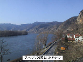ザルツブルク以外の3都市はそれぞれが国の首都であるが非常に近い。上流からウィーン、ブラチスラヴァ、ブダペストの順で、その間の距離はウィーン・ブラチスラヴァ間が60Km、ブラチスラヴァ・ブダペスト間は160Kmに過ぎない。ウィーン・ブダペスト間を220Kmとすると、博多から出水くらいまでの距離でしかない。 16世紀には、オスマントルコがドナウ川沿いに攻め上がってきて、ブダペストはトルコ側に陥ちてしまった。ウィーンは包囲され陥落寸前までいったが北から来た救援軍のお陰で危うく難を逃れた。陸続きの国は大変である。コーヒーはウィーンを象徴する飲み物であるが、それはこの時のトルコ軍が残していったものが起源だという。 自然を主とした風景としてはここが最高であった。ウィーンからバスで約2時間ドナウを遡ったところにある。 デュルンシュタインという小さな村があって中世が今に息づいているような、物語の世界に入り込んだようなすてきな所であった。