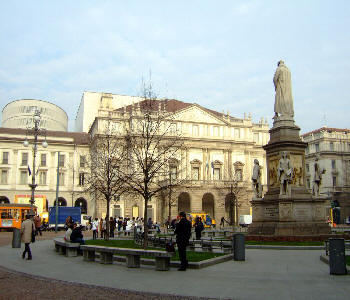 スカラ座の前は広場になっていてレオナルド・ダヴィンチの石像がある。