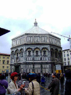 この建物は写真で見ると大したことがないように見えますが、実はこの建物はルネッサンスの幕開けとなった”宝石箱”といわれており、貴重な美術品の宝庫なのです。全体は八角形をしており南北東三方にある青銅の扉のデザインで有名です。