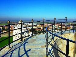 他の塔と違ってこの塔は斜めになっているので、登るのも結構大変です。塔は丸いので円筒形の壁に沿ってらせん状に登っていくのですが、通路も傾いているので身体も傾いてバランスをとるのが大変、酔っ払って歩いているような気分です。地上55m、階段297段