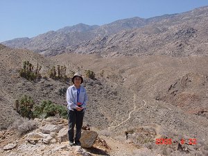 ついでのついでです。パーム・スプリングスに行ったとき登ったサボテンだらけの砂漠の山で写した写真と、我々のアパートの敷地内にあるプールで写した写真を添付して見ます。取りあえずこの辺もアメリカ的かなあと思いますので。